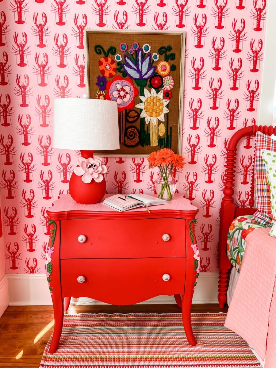 One of the simplest ways to use red and pink indoors is by creating an accent wall. A deep red wall can serve as a dramatic backdrop for living areas or dining rooms, while a soft pink can add a touch of femininity to bedrooms or nurseries. It’s become quite popular in the last couple of years to use wallcovering as an accent wall as opposed to just painting one wall. It can add a lot of drama and be used as an art piece.